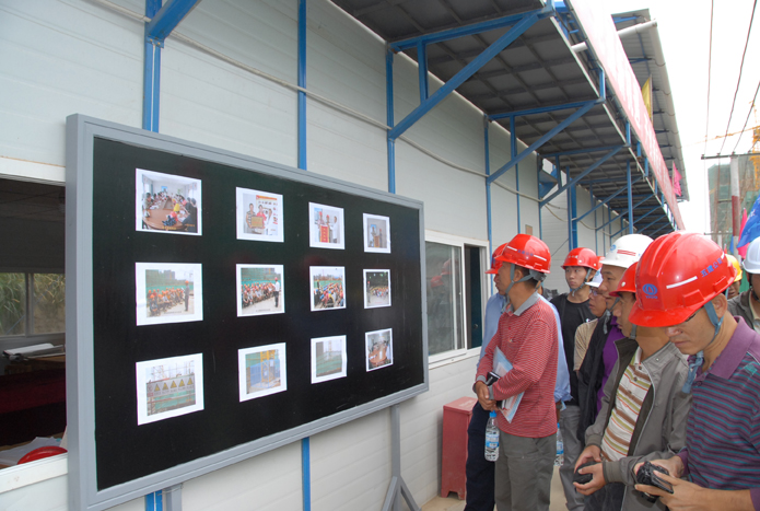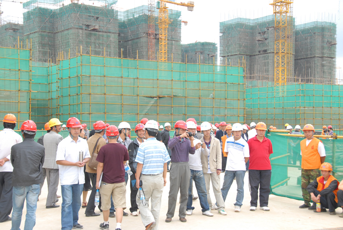 會(huì)后,所有參會(huì)人員參觀了五公司第三城•丹槿園項(xiàng)目現(xiàn)場(chǎng)安全、文明施工管理和班組班前活動(dòng)。
