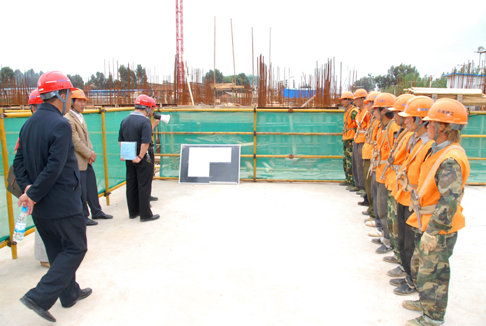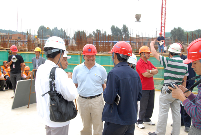 技術(shù)支持: 方森科技 2010年8月25日上午,集團(tuán)公司在五公司第一直管部承建的第三城•丹槿園施工現(xiàn)場(chǎng)召開(kāi)施工現(xiàn)場(chǎng)班組安全建設(shè)啟動(dòng)儀式現(xiàn)場(chǎng)會(huì)。昆明市建筑安全監(jiān)督管理站站長(zhǎng)梁少軍,集團(tuán)公司副總經(jīng)理?xiàng)顫?、安全總監(jiān)段益慶、生產(chǎn)安全處主任蘇雄斌,五公司董事長(zhǎng)、黨委書(shū)記楊福和出席會(huì)議。會(huì)議由段益慶主持。