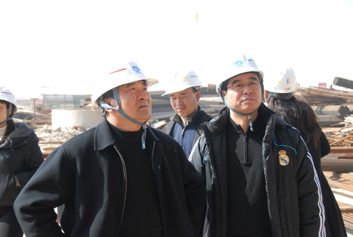 楊福和等公司領(lǐng)導(dǎo)在會前還到施工現(xiàn)場參觀和了解現(xiàn)場情況。