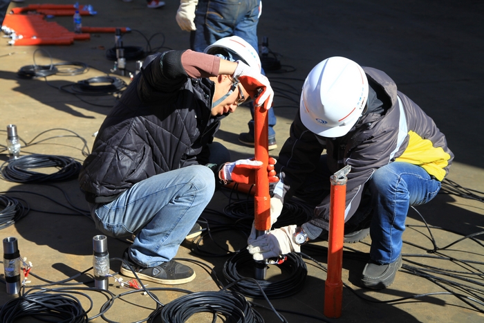 “15MPA、18MPA、21MPA……”2013年1月17日,云南大力神鋼結(jié)構(gòu)廠區(qū)內(nèi)傳來了一個儀器讀數(shù)的聲音,一群五建人雙眼緊盯著一個輪扣架體,神情緊張卻又充滿期盼, 600KN壓力試驗機儀表指針不停地的轉(zhuǎn)動著,“砰”的一聲,儀表指針飄過24MPA旋即回到零位,場地上的人好似卸掉重負一般歡欣起來:“輪扣壓力試驗成功了!”