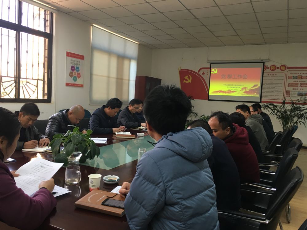 2019年1月31日上午,五〇四直管部會(huì)議室內(nèi)全體黨員同志、各項(xiàng)目經(jīng)理及科室負(fù)責(zé)人集聚一堂,以主人翁的身份為直管部2019年黨建工作建言獻(xiàn)策。與會(huì)同志緊緊圍繞《2019年黨支部建設(shè)計(jì)劃》、《2019年工會(huì)、群團(tuán)工作計(jì)劃》展開了熱烈地討論。 “黨建工作促生產(chǎn)建設(shè)一要提高認(rèn)識(shí),增強(qiáng)工作的主動(dòng)性,二要黨建工作虛功實(shí)做,就需要深入現(xiàn)場(chǎng)抓好四同步”,“黨支部要提高活力,一要增加活動(dòng)次數(shù),二...