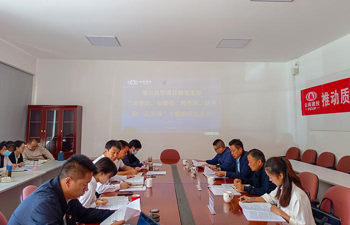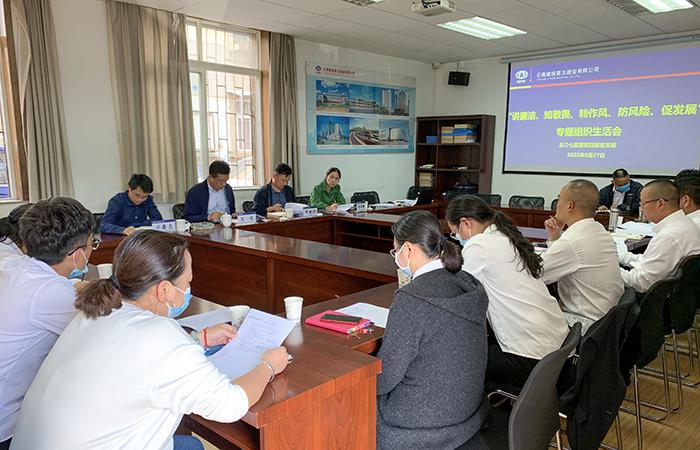 9月27日下午,五〇七直管項目部黨支部召開“講廉潔、知敬畏、轉(zhuǎn)作風(fēng)、防風(fēng)險、促發(fā)展”專題組織生活會,公司副總經(jīng)理石俊到會指導(dǎo)。按照公司黨委要求,黨支部在會前扎實組織開展集體研討與個人自學(xué),廣泛征求意見,深入開展談心談話,緊密結(jié)合個人思想、學(xué)習(xí)和工作實際查擺問題,認(rèn)真撰寫對照檢查材料,為開好組織生活會奠定了堅實基礎(chǔ)。會上,支部書記代表直管部領(lǐng)導(dǎo)班子通報了會議準(zhǔn)備情況并作動員講話,同時圍繞專題民主生活…