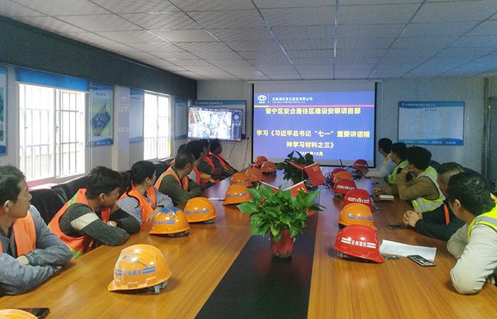 10月30日上午,晉寧區(qū)安企居住區(qū)建設(shè)安裝項目部在會議室,組織召開一線人員學(xué)習(xí)《習(xí)近平總書記“七一”重要講話精神學(xué)習(xí)材料之三》及《增強安全意識,強化新安全法學(xué)習(xí)》精神。項目部管理人員、班組長、班組人員參會。此次會議首先學(xué)了《習(xí)近平總書記“七一”重要講話精神學(xué)習(xí)材料之三》永遠把偉大建黨精神繼承下去發(fā)揚光大?!耙话倌昵埃袊伯a(chǎn)黨的先驅(qū)們創(chuàng)建了中國共產(chǎn)黨,形成了堅持真理、堅守理想,踐行初心、擔當使命,…