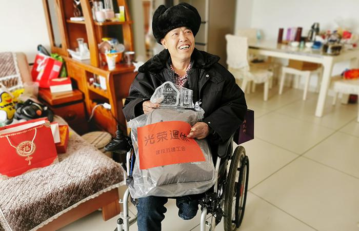 • 1月12日上午,冬日的寒風(fēng)凌冽,卻擋不住五〇五直管部工會、綜合辦、后勤部職工代表的腳步。帶著公司工會統(tǒng)一發(fā)放的退休紀(jì)念品、直管部工會準(zhǔn)備的糖友食品,直管部職工代表們敲開了退休職工王衛(wèi)雄的家門?!皝砝玻俊卑橹爸ㄑ健钡囊宦?,門被打開,王衛(wèi)雄坐在輪椅上,滿臉笑意:“好久不見啦!進來坐!”“王師,好久不見,最近身體怎么樣?”工會主席普俊寓將帶來的紀(jì)念品、食品放在桌子上,關(guān)切地問道。王衛(wèi)雄用手熟練地操控著…