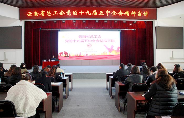 12月18日下午,云南省總工會在公司宣講黨的十九屆五中全會精神及習(xí)近平總書記在全國勞動模范和先進(jìn)工作者表彰大會上的重要講話精神。集團(tuán)工會副主席趙艷波主持宣講活動,公司工會主席冷蕊,機(jī)關(guān)各職能部門代表及各直管部、實(shí)體工會主席帶隊(duì)共96人參加宣講?;顒友埩嗽颇鲜」で鄫D干部學(xué)校社會學(xué)副教授、黨政辦公室副主任劉瑞華老師為公司做黨的十九屆五中全會精神專題輔導(dǎo)和宣講,還邀請了全國勞模李永山、云南省勞模魏東作…