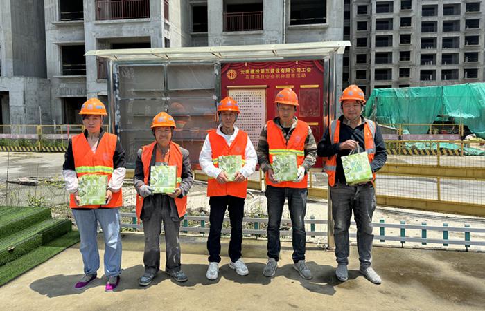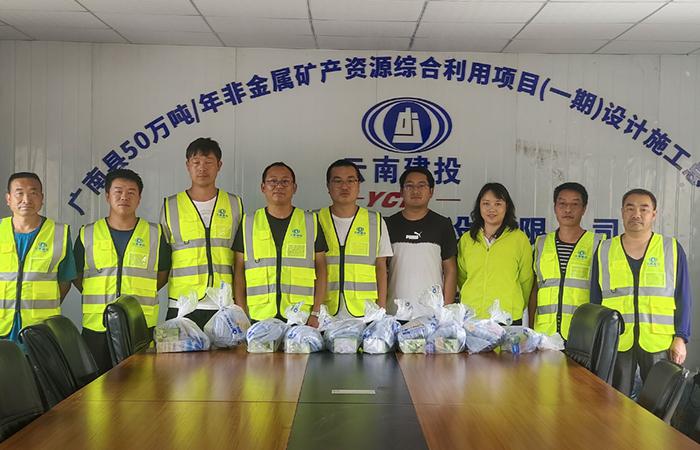 • 5月27日,五〇三直管項(xiàng)目部工會(huì)開(kāi)展“幸福建投 共建共享”送清涼活動(dòng)。活動(dòng)緊緊圍繞集團(tuán)《幸福建投工作指引手冊(cè)(試行)》及公司“送清涼”活動(dòng)通知要求開(kāi)展,直管部工會(huì)深入廣南縣50萬(wàn)噸/年非金屬礦產(chǎn)資源綜合利用項(xiàng)目(一期)設(shè)計(jì)施工總承包項(xiàng)目慰問(wèn)一線職工?;顒?dòng)傳達(dá)了公司、直管部?jī)杉?jí)黨政及工會(huì)對(duì)職工的關(guān)懷,著重宣貫了《幸福建投建設(shè)工作指引手冊(cè)》《勞動(dòng)書寫新篇章 奮斗筑夢(mèng)新征程倡議書》《云南省職工困難幫扶申…