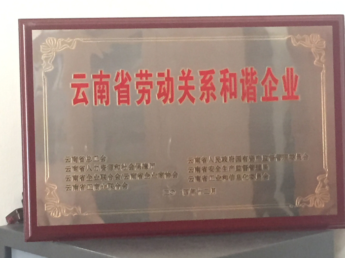 • [工會工作] 公司榮獲2014年度云南省勞動關系和諧企業(yè)榮譽稱號