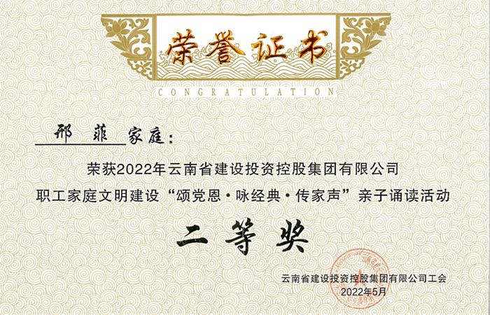 公司職工在集團親子誦讀活動中喜獲二等獎