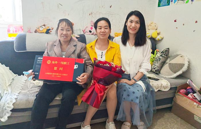 為感謝奮戰(zhàn)在海外項(xiàng)目一線的職工及家屬,4月26日,直六工會(huì)主席王倩代表公司、直管部走訪慰問海外職工家屬,為他們送去吸塵器、鮮花等慰問品。受新冠肺炎疫情影響,第六直管項(xiàng)目部援老撾鐵道職業(yè)技術(shù)學(xué)院項(xiàng)目、老撾萬萬高速項(xiàng)目、柬埔寨18007項(xiàng)目的職工們無法按時(shí)休假,不能回來與家人團(tuán)聚,有的職工已經(jīng)接近兩年沒有回家了,一直堅(jiān)守在工作崗位上。在援老撾鐵道職業(yè)技術(shù)學(xué)院項(xiàng)目職工徐章銳和老撾萬萬高速二工區(qū)項(xiàng)目陸禮家…