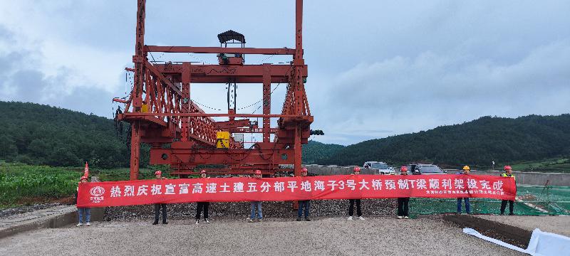 宣富高速公路項目五分部平地海子3號大橋T梁順利架設完成