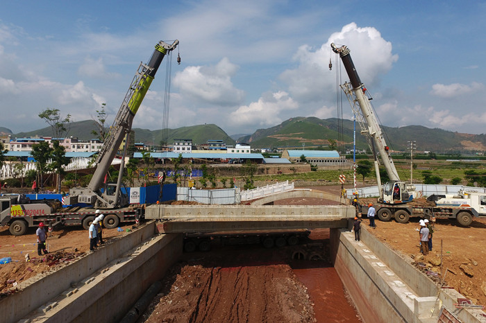 7月25日,由公司路橋二部組織施工的元謀縣濱江大道建設(shè)項(xiàng)目K0+238(1-16m空心板)橋左幅橋臺(tái)已完成施工,正在進(jìn)行橋面梁吊裝,該工序標(biāo)志著該橋正式進(jìn)入橋面施工階段。 “目前橋墩已經(jīng)建設(shè)完畢,目前正在吊橫梁。橫梁建設(shè)完畢之后,開始進(jìn)行吊橋板、橋面鋪裝、橋面硬化和附屬設(shè)施安裝工作?!痹谠擁?xiàng)目現(xiàn)場,大型挖掘機(jī)、吊車以及運(yùn)輸...