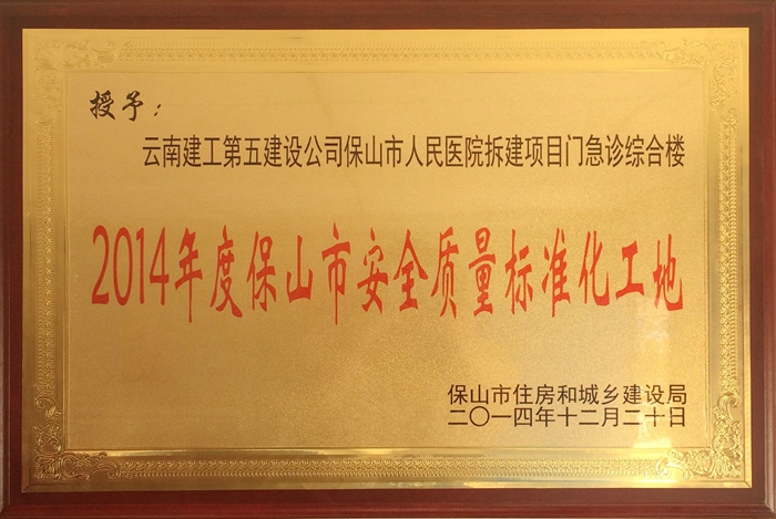 保山市人民醫(yī)院遷建項(xiàng)目榮獲“2014年度保山市安全質(zhì)量標(biāo)準(zhǔn)化工地”