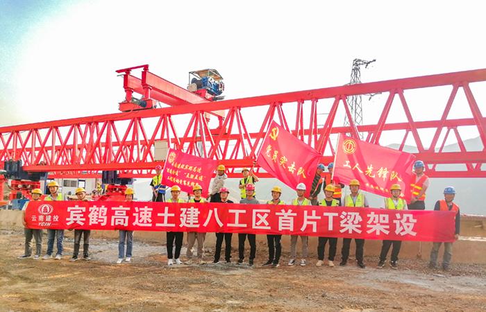 賓鶴高速項(xiàng)目八工區(qū)第一片T梁成功架設(shè)