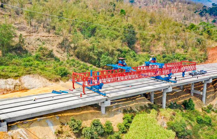永金高速一分部南媽1、2號大橋梁板順利架通