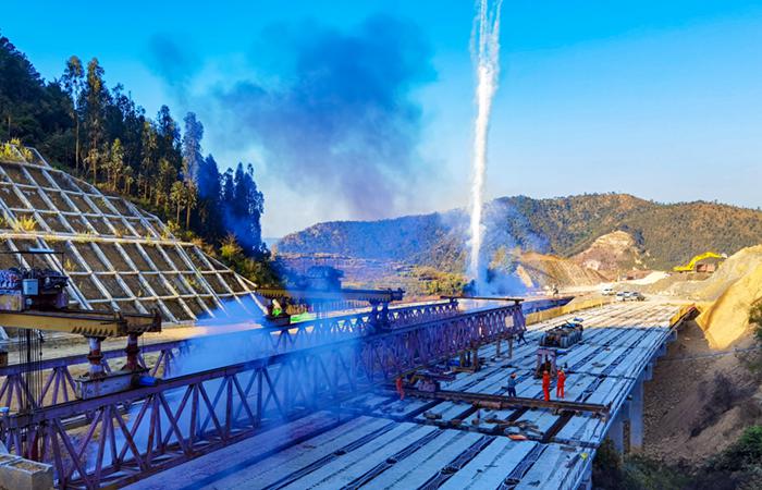 2月17日,隨著玉屏村1號(hào)大橋最后一片T梁吊裝成功,彌玉高速象山項(xiàng)目圓滿(mǎn)完成標(biāo)段內(nèi)T梁架設(shè)工作。彌玉高速象山試驗(yàn)段主線(xiàn)內(nèi)共設(shè)置6座大橋,橋梁梁板設(shè)計(jì)為18.5米~40米不等的T梁,共計(jì)266片。甸基壩1、2號(hào)大橋及玉屏村3號(hào)大橋完成T梁架設(shè)工作后,剩余玉屏村1、2號(hào)大橋98片T梁因中石油管道改遷問(wèn)題,運(yùn)梁通道一直未能成型,導(dǎo)致T梁吊裝工作延后一年多才得以組織開(kāi)展。施工條件達(dá)到后,項(xiàng)目領(lǐng)導(dǎo)加緊落實(shí)架…
