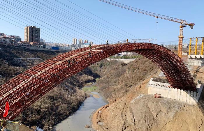 鎮(zhèn)雄三孔景觀(guān)橋鋼拱架順利合龍