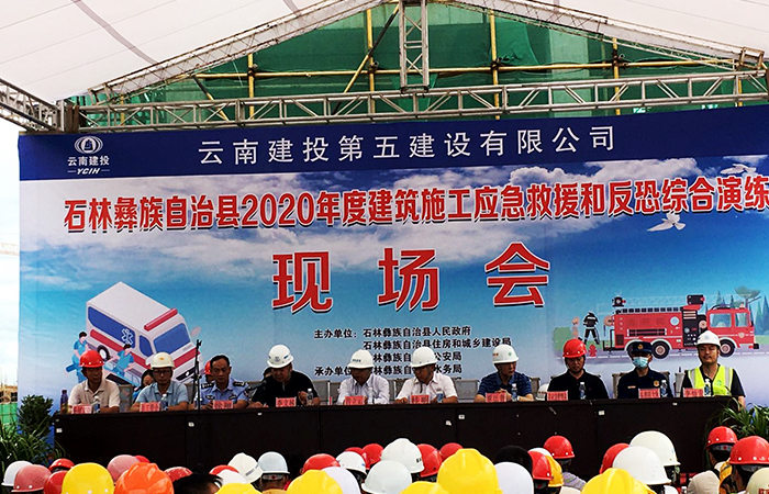 7月16日下午,由石林彝族自治縣人民政府、住房和城鄉(xiāng)建設(shè)局、公安局主辦,公司第六直管部承辦的石林縣2020年度建筑施工應(yīng)急救援和反恐綜合演練在石林縣魚龍水庫工程天生橋村移民安置房建設(shè)工程第三標(biāo)項(xiàng)目舉行。昆明市建設(shè)工程質(zhì)量安全監(jiān)督管理總站房建處處長覃廷貴,石林縣主管部門領(lǐng)導(dǎo)出席活動。石林縣15家施工企業(yè)代表,48個(gè)在建項(xiàng)目甲方代表、項(xiàng)目經(jīng)理、監(jiān)理、專職安全員等共計(jì)200余人參...