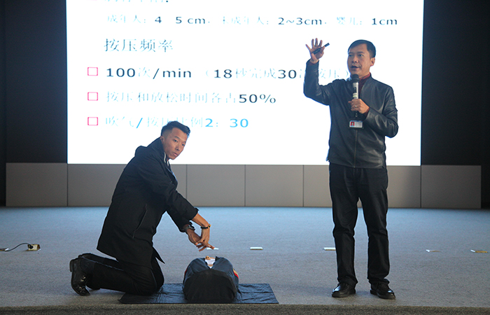 1月15日,公司人力資源部組織職工開展安全健康宣教培訓,特別邀請中國安全健康教育中心主任武宏宇授課,100名公司職工參與培訓。 “工作時,遇到突發(fā)中暑、外傷的情況如何急救?”“游泳時,遇到溺水突發(fā)情況如何自救互救?”武宏宇利用PPT,結(jié)合生動實例,將可能會遇到的突發(fā)事件及有效急救措施向大家進行介紹,并重點講解了 “心肺復蘇”、“人工呼吸”、“猝死”等常用的急救知識和技能…