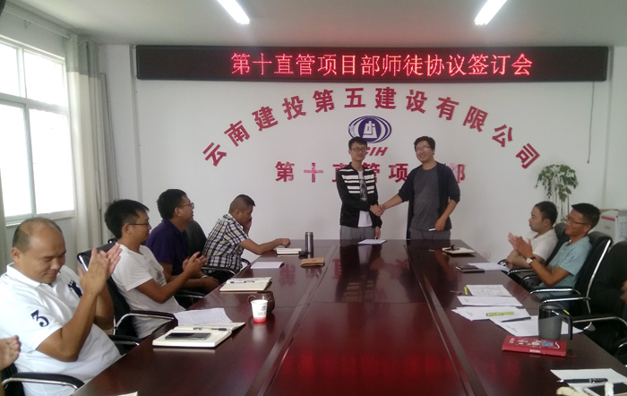 8月26日上午,第十直管項目部舉行2019年度新入職員工“師帶徒”協(xié)議簽署儀式。直管部經(jīng)理方云波、 直管部副經(jīng)理鄭開盛、 主任經(jīng)濟師羅亞玲等直管部班子成員、各科室負(fù)責(zé)人和項目經(jīng)理參加簽署儀式 。 本次“師帶徒”協(xié)議簽署儀式秉承省建五公司“用人、育人、留人”的人才理念,為施新穎、鄢茹丹、何彩霞、王一涵、周楊五名新員工安排了幫帶…